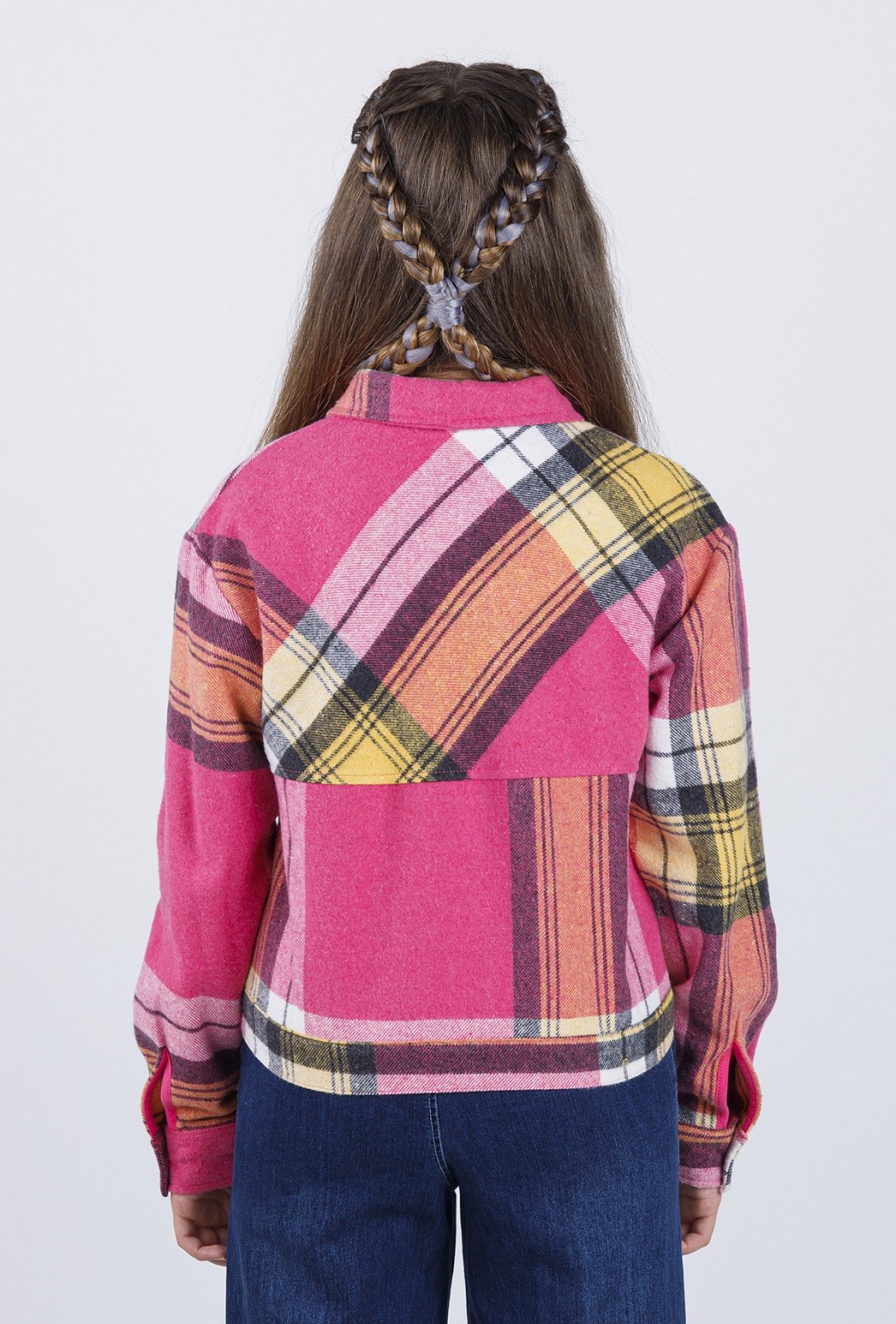 Рубашка Dmb для девочек выполнена из фланели. Модель прямого кроя с отложным воротником и манжетами на пуговицах. Изделие имеет длинные рукава и накладные карманы.