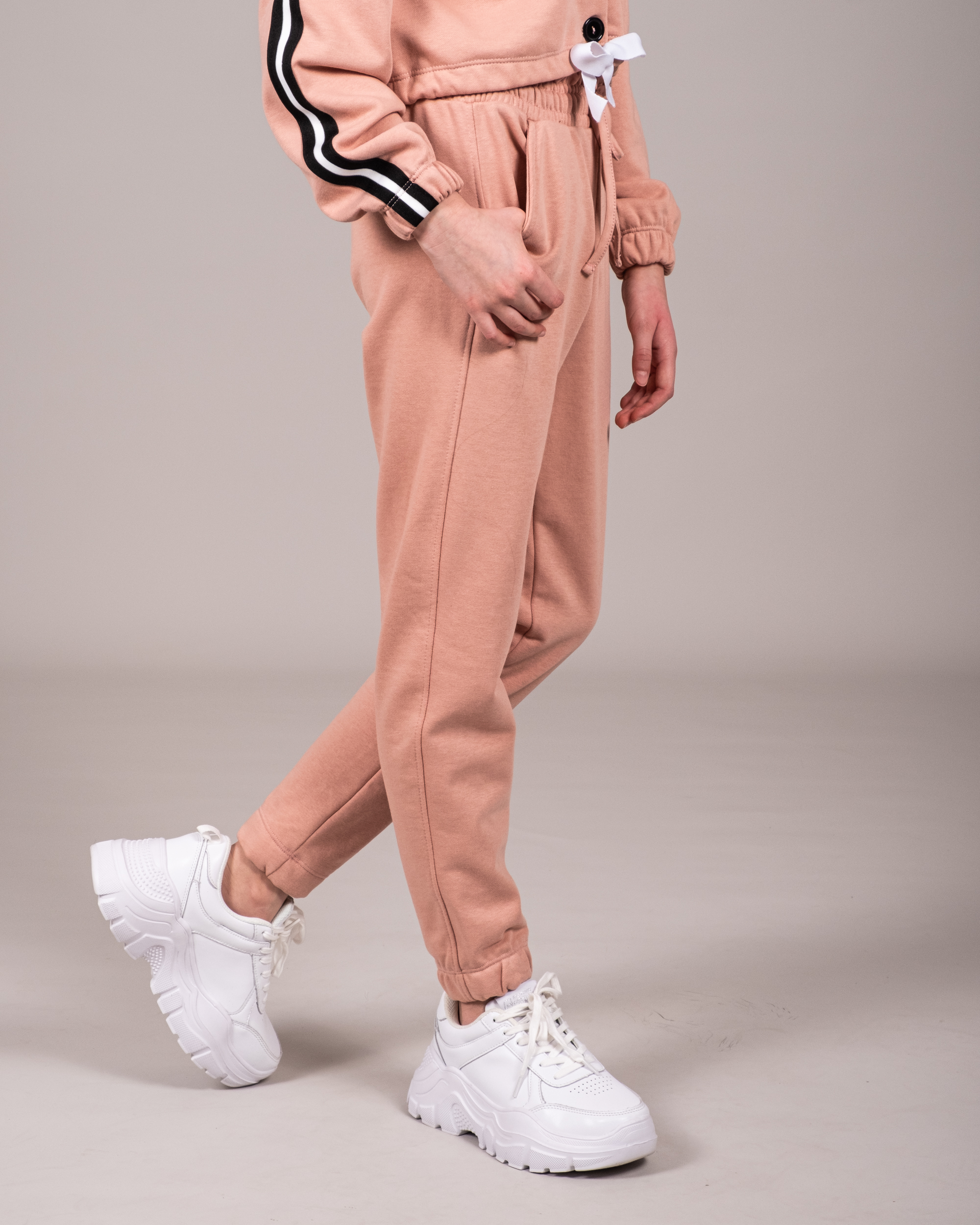 Спортивные брюки  выполнены из трикотажа футер (петля). Низ брюк обработан эластичным манжетом. Брюки имеют два удобных боковых кармана.Мягкие и прияные, не линяют, не садятся, не выцветают, отлично переносят многократный цикл стирок. Подойдут для занятий физкультурой, поездок, активных игр и прогулок на свежем воздухе.