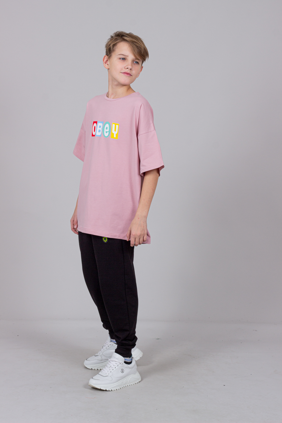 Футболка "Оверсайз"  прямого кроя со спущенной линией плеча и округлой горловиной.