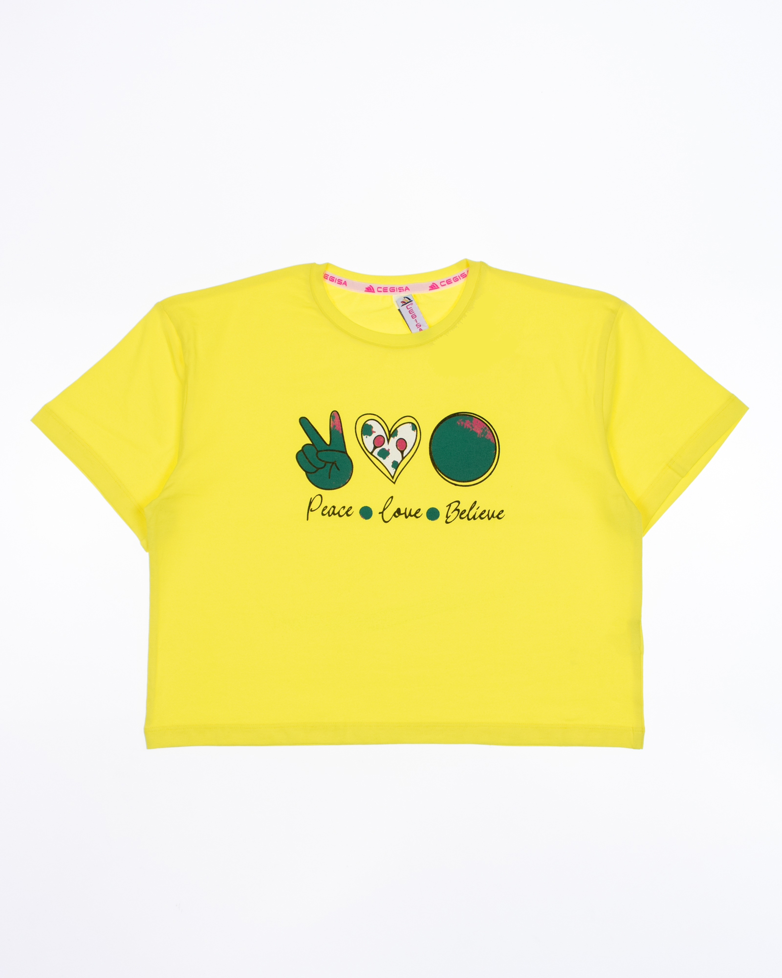 Футболка Cegisa для девочки оптом, выполнена из высококачественного материала кулирка с добавлением эластана. Приятная на ощупь ткань футболки с принтом не потеряет свой первоначальный вид после множества стирок. Футболка на девочку хорошо пропускает воздух и не закатывается. Модель укороченная не сковывает движения и комфортна в носке. Стильная и милая дизайнерская печать прекрасно дополнит образ. Футболка отлично подходит для повседневной носки, физкультуры или дома.