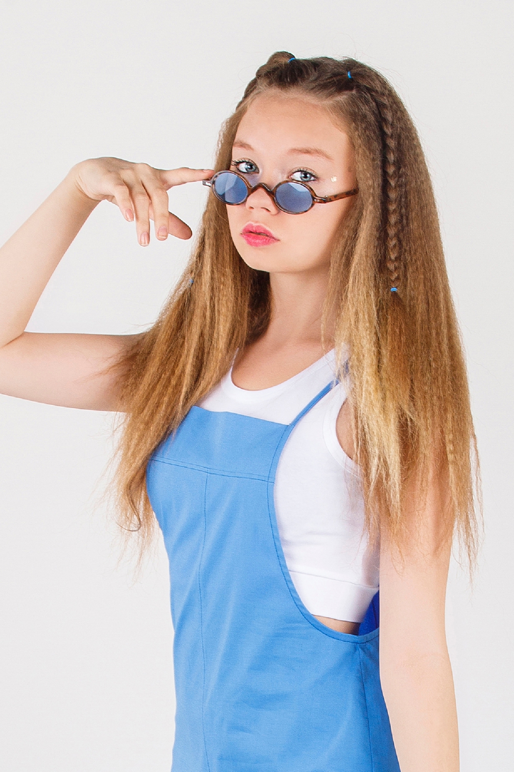 Оригинальный хлопковый комбинезон Dmb на тонких бретелях. Комплект дополняет трикотажный, белый кроп-топ с широкими лямками.
