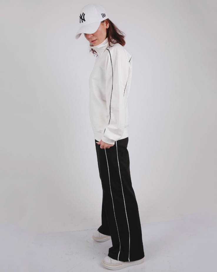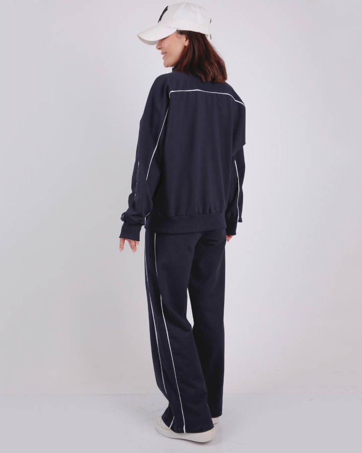 Олимпийка этого костюма имеет свободный крой, что позволяет ребенку свободно двигаться. Воротник-стойка придает модели стильный и современный вид. Рукава в стиле "летучая мышь" добавляют оригинальность и позволяют ребенку чувствовать себя необычайно комфортно. Брюки костюма имеют прямой крой, который подчеркивает фигуру девочки. Они широкие и оснащены двумя карманами, что придает модели практичность и удобство. Важным элементом дизайна данного костюма является контрастный кант, которым он декорирован. Он придает модели стильный и яркий вид. Контрастный кант делает костюм более выразительным и привлекательным для девочек любого возраста. Спортивный костюм TETO для девочки оптом из Турции – это отличное сочетание качества, комфорта и стиля.