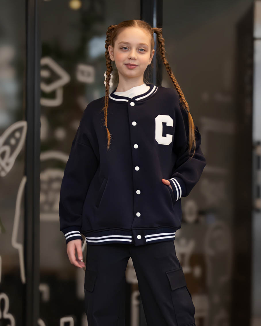 Трикотажный  бомбер dmb с начесом оптом. Бомбер школьный без лишних деталей отлично впишется в повседневный гардероб. Модель свободная, без капюшона, на манжетах.