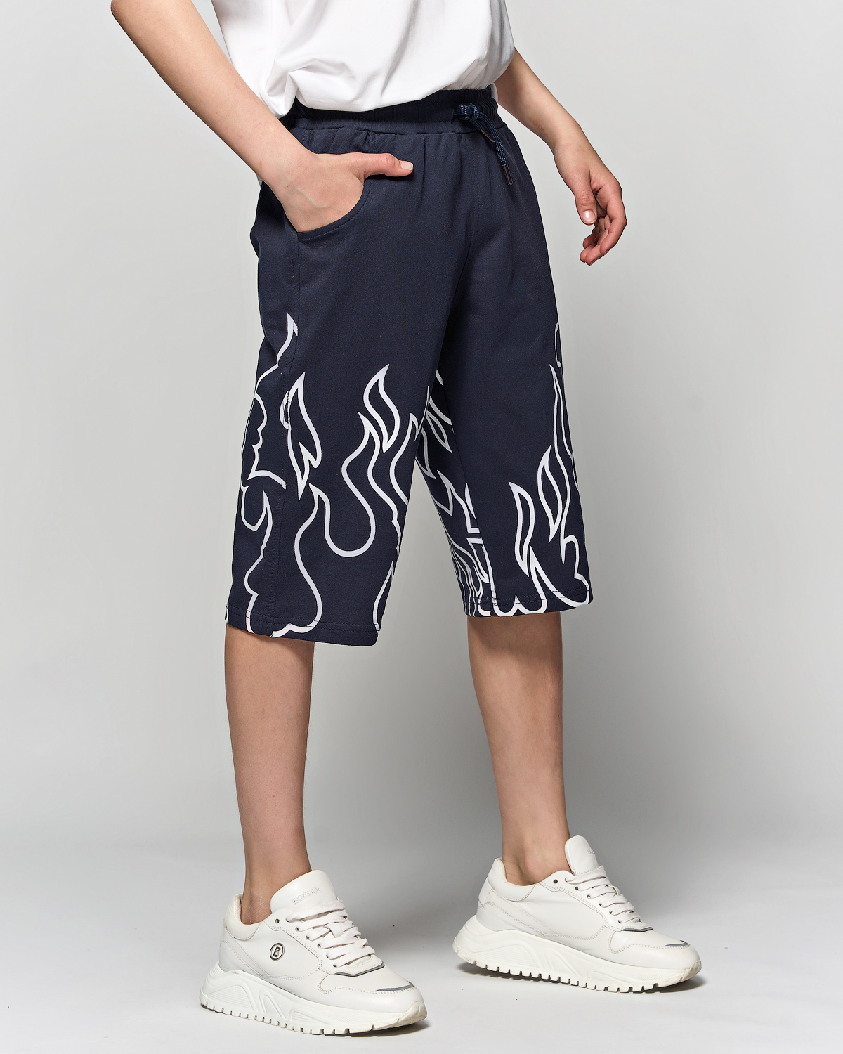 Комфортные бриджи Cegisa для мальчиков из натурального хлопка оптом, украшены принтом. Свободный фасон, эластичная талия с функциональным шнурком, два кармана спереди.
