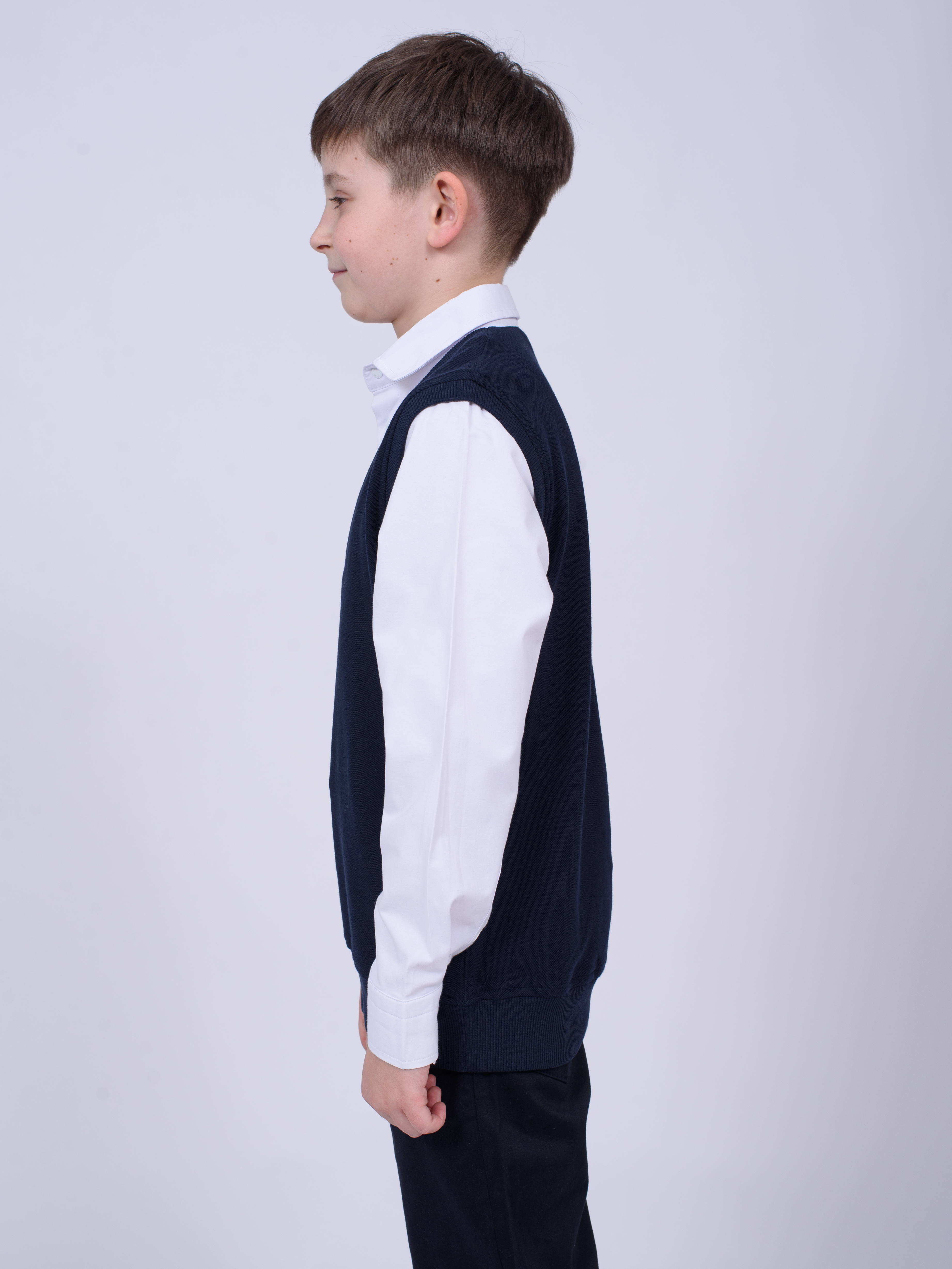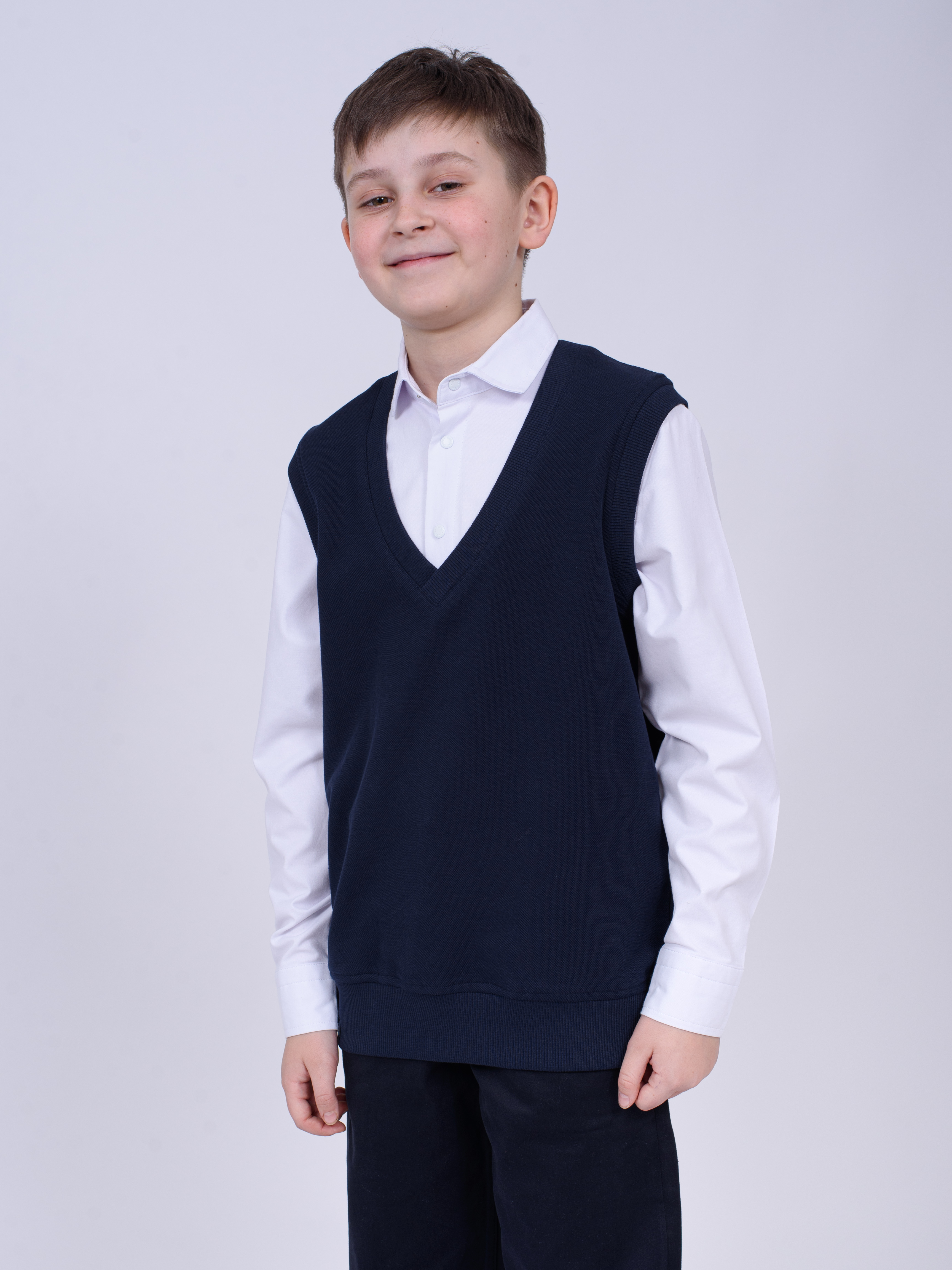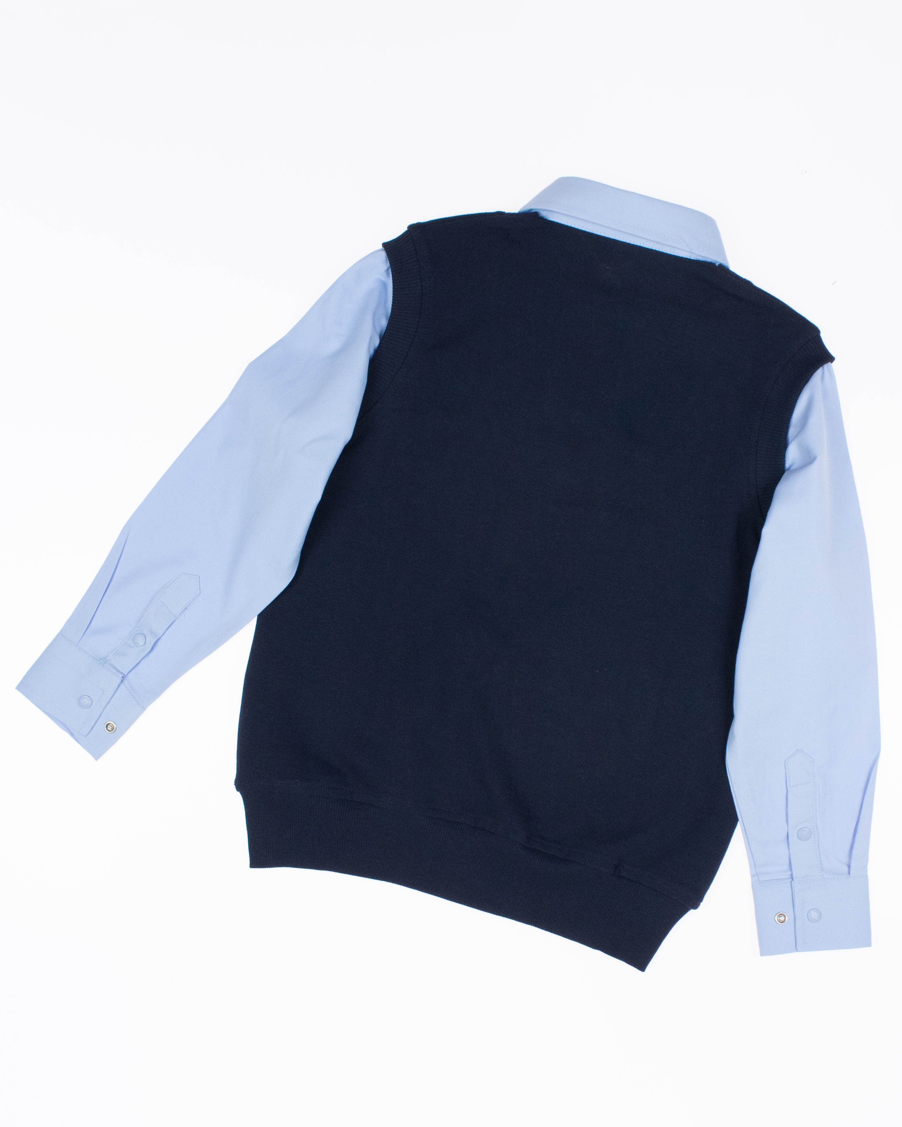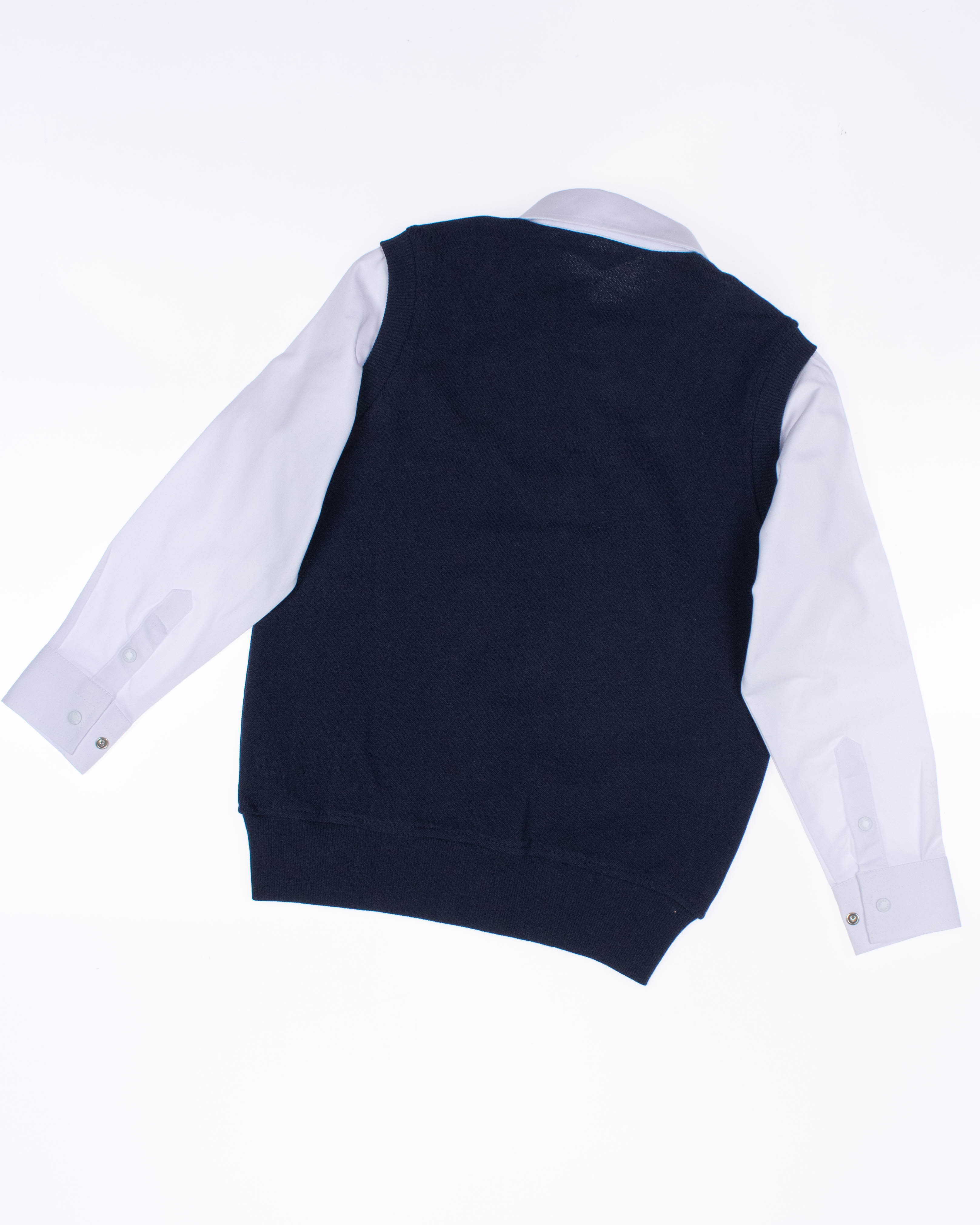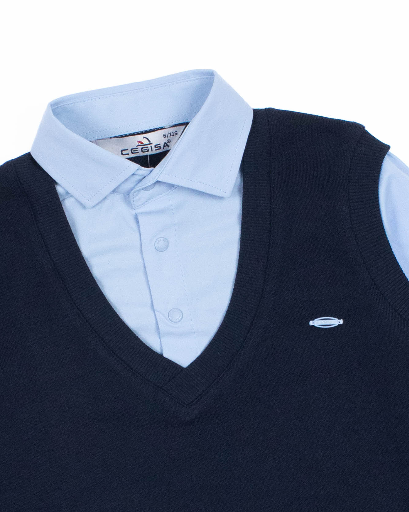 Школьный джемпер-обманка для мальчика оптом с имитацией рубашки выполнен из качественного хлопкового трикотажа с небольшим добавлением лайкры. Ворот сшит из рубашечной хлопковой ткани, застежка-кнопки. Джемпер-обманка выглядит как полноценный комплект рубашки и джемпера. Мальчик будет всегда опрятен в школе, сохраняя при этом официальный дресс-код. Качество наших изделий подтверждают многократные стирки в стиральной машине, при которых жилет-обманка сохраняет прежний вид, без деформации и окрашивания рукавов или ворота. Торговая марка CEGISA представляет большой ассортимент качественной, красивой, классической школьной и спортивной одежды турецкого производства для детей и подростков.