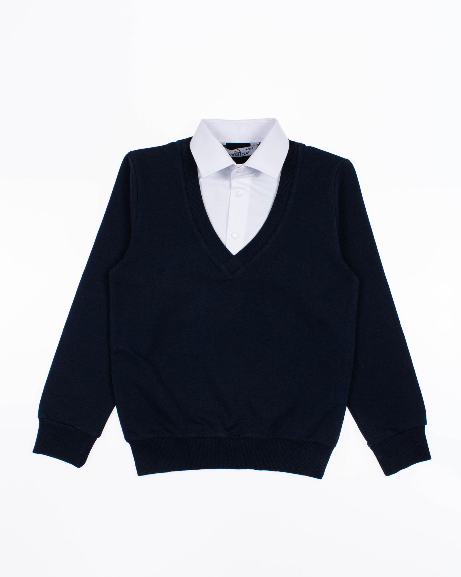 Школьный джемпер-обманка CEGISA для мальчика оптом с имитацией рубашки выполнен из качественного хлопкового трикотажа. Ворот сшит из рубашечной хлопковой ткани, застежка-кнопки.  Джемпер-обманка выглядит как полноценный комплект рубашки и джемпера. Мальчик будет всегда опрятен в школе, сохраняя при этом официальный дресс-код. Качество наших изделий подтверждают многократные стирки в стиральной машине, при которых джемпер-обманка сохраняет прежний вид, без деформации и окрашивания рукавов или ворота. Торговая марка  CEGISA представляет большой ассортимент качественной, красивой, классической школьной и спортивной одежды турецкого производства для детей и подростков.