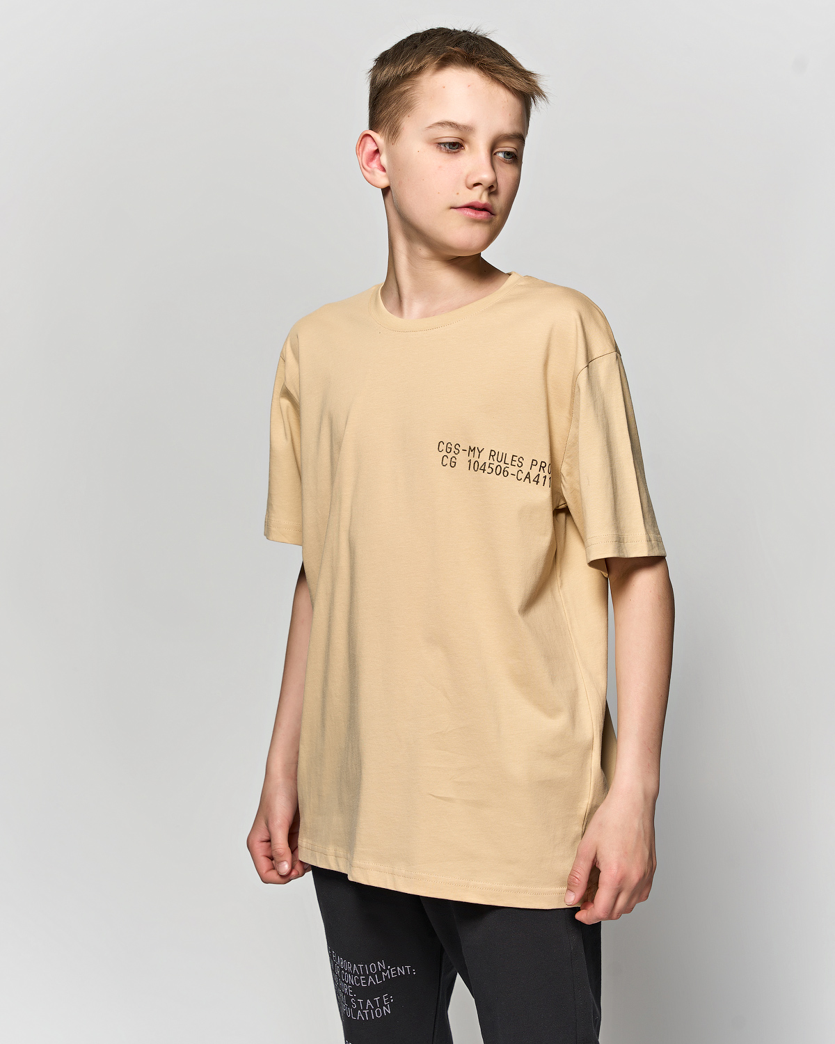Футболка для мальчика Cegisa прямого кроя оптом. Спереди и сзади расположен графичный принт.