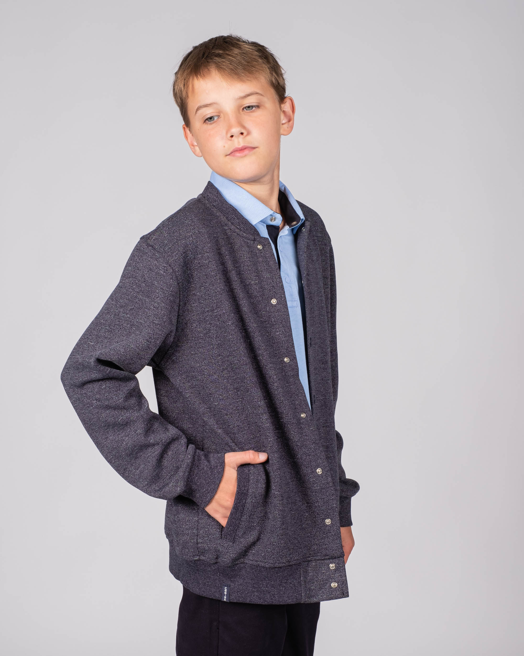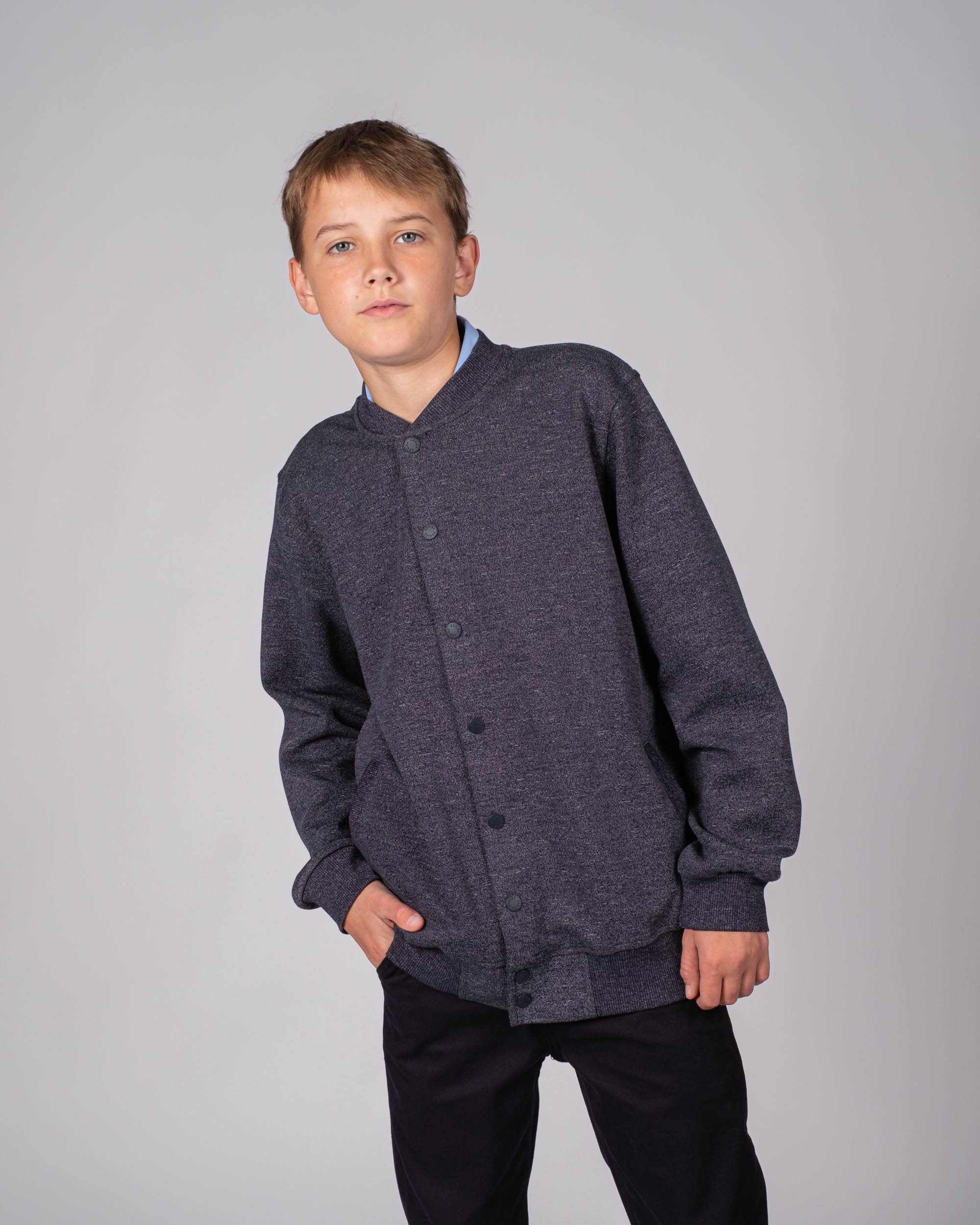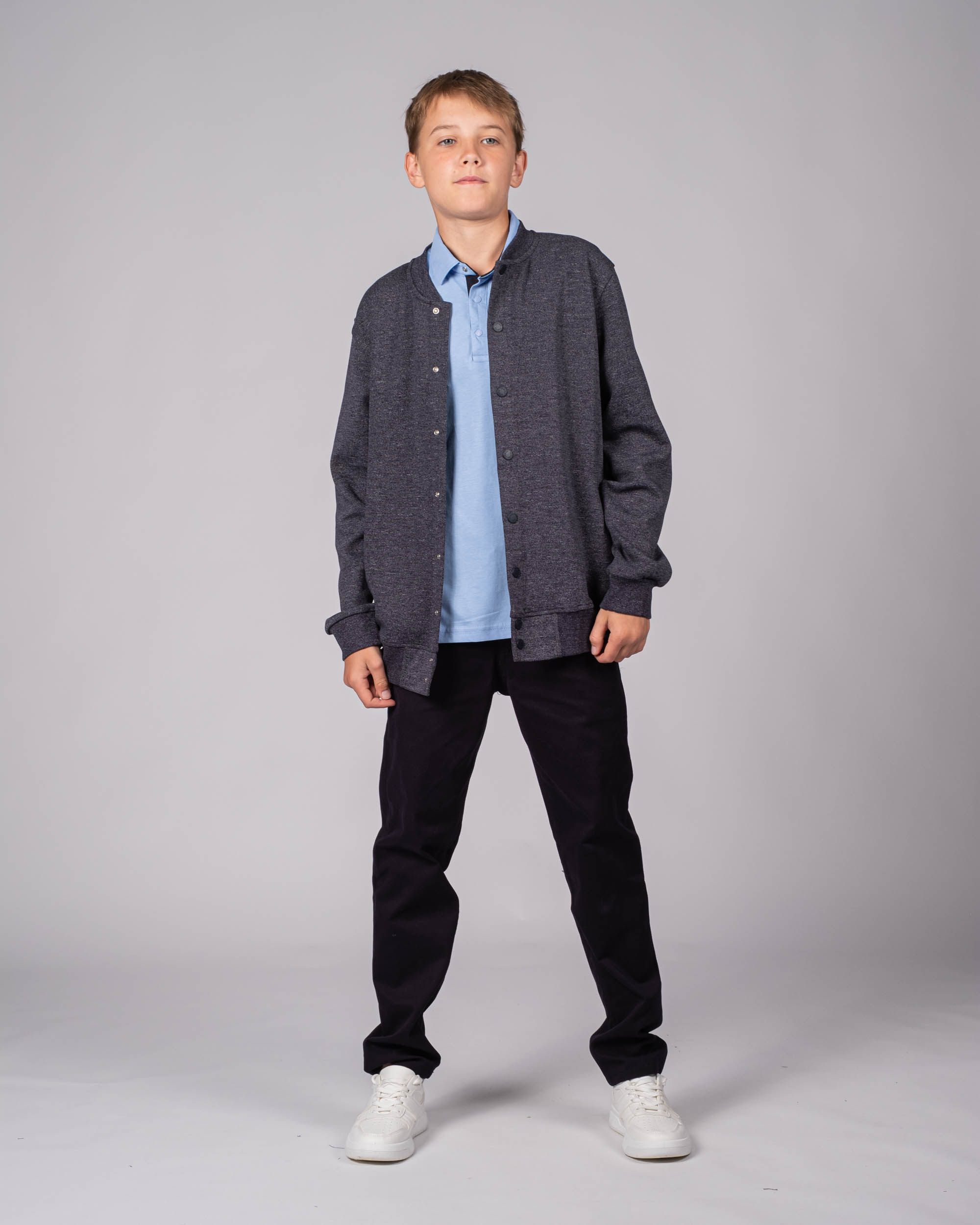 Трикотажный бомбер Cegisa для мальчика оптом. Выполнен из смесовой ткани, в составе которой натуральный хлопок с добавлением полиэстера. Воротник стойка. Низ изделия и рукава на трикотажном манжете. Вместительные карманы и разъемная застежка - кнопки. Хорошо сохраняет цвет и форму при длительной носке и после многократных стирок. Прекрасно будет смотреться как школьная форма.