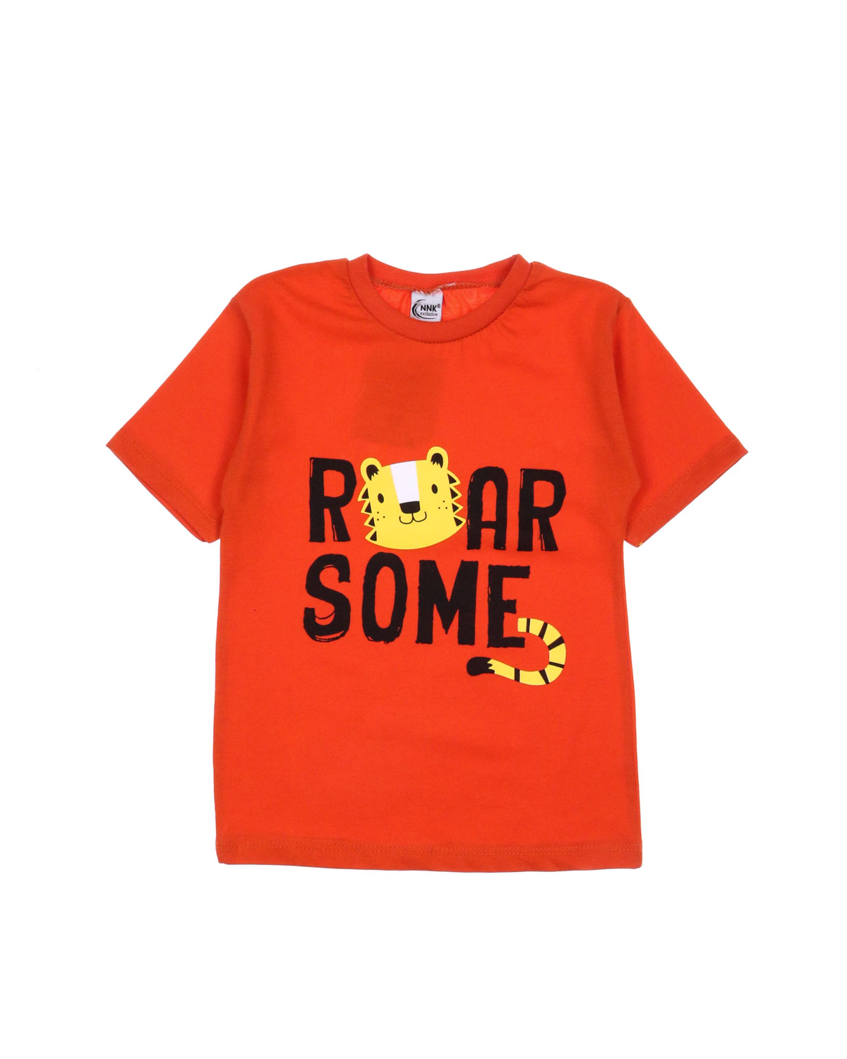 Костюм для мальчика, состоит из футболки и шорт. Модель выполнена из хлопкового полотна и оформлена печатным принтом. Футболка прямого кроя, с округлым вырезом горловины. Ткань кулирная гладь.