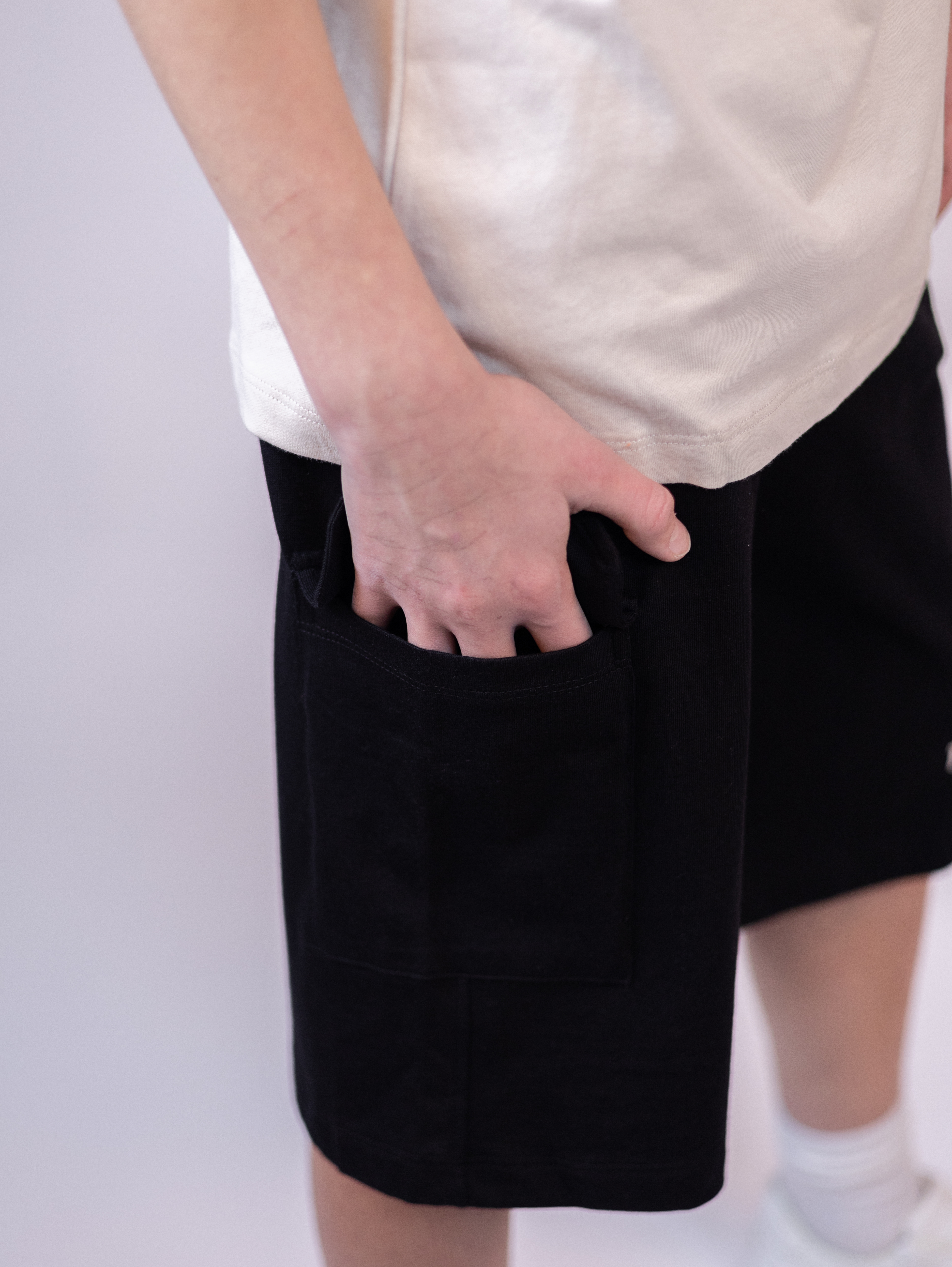 Костюм для мальчика DMB оптом. Футболка прямого кроя с короткими рукавами. Бриджи трикотажные с боковыми карманами. Пояс на резинке с функциональным шнурком позволяет ругулировать объем на талии.
