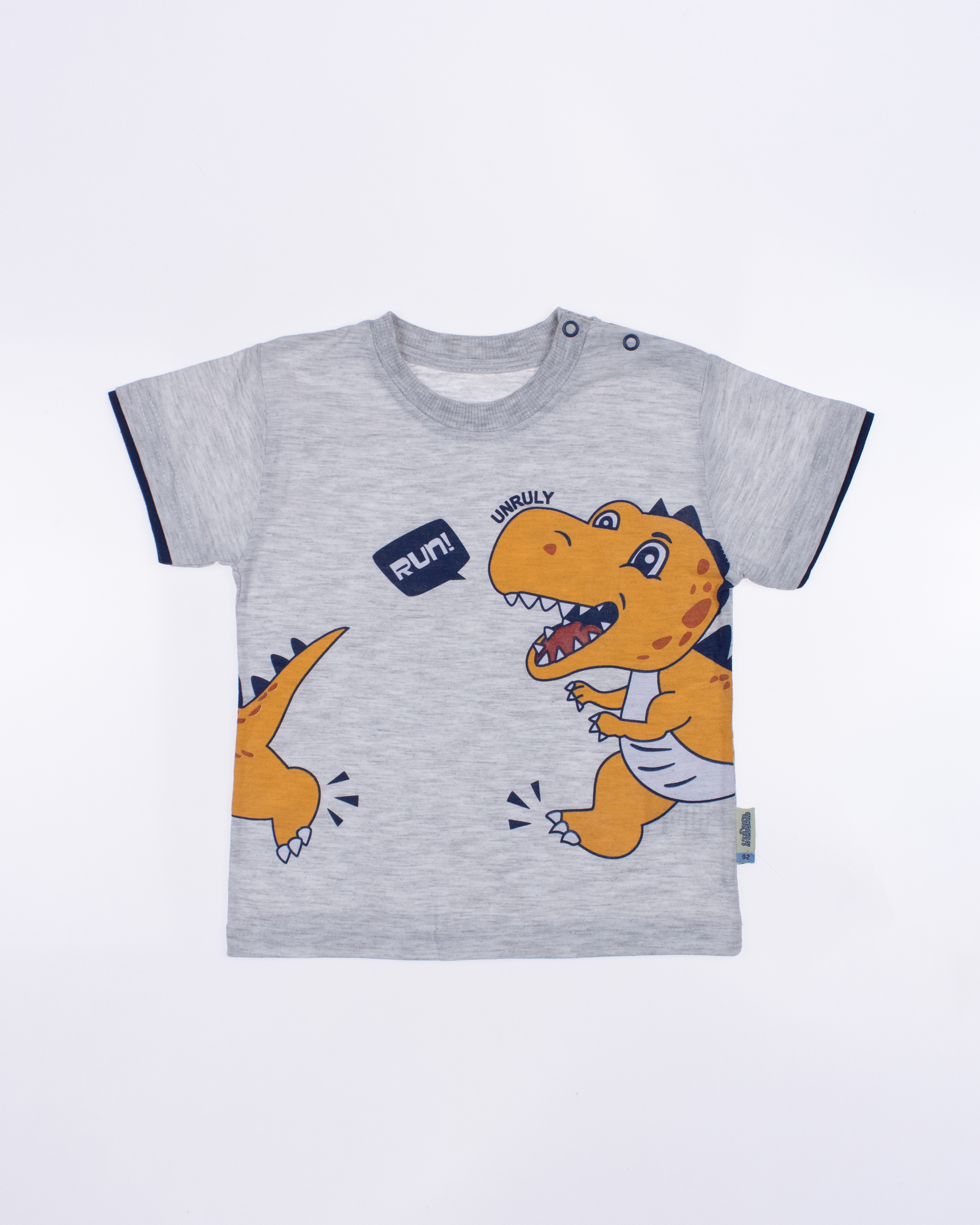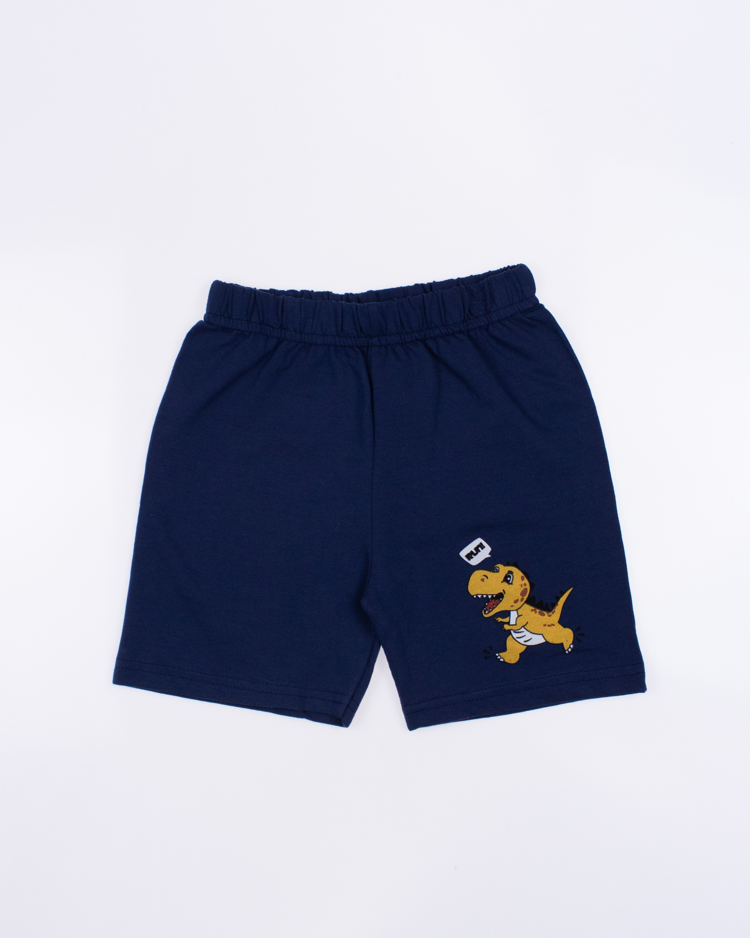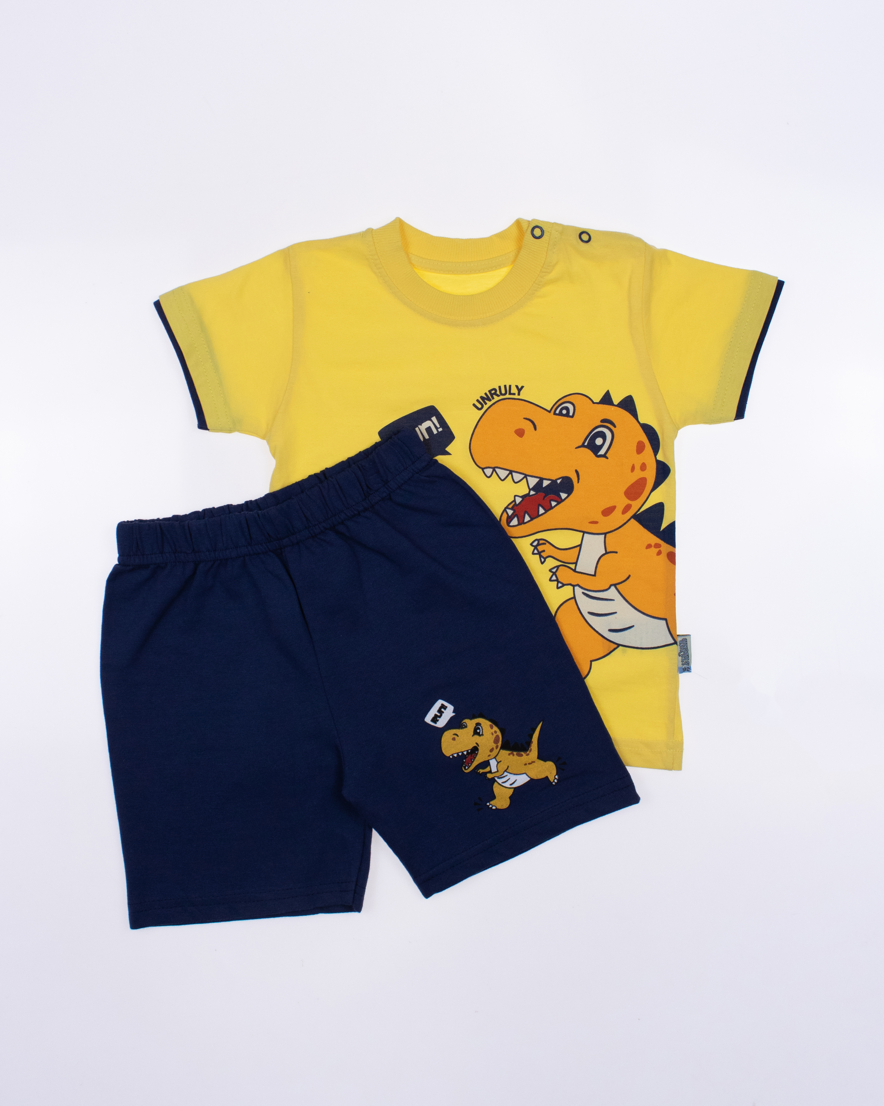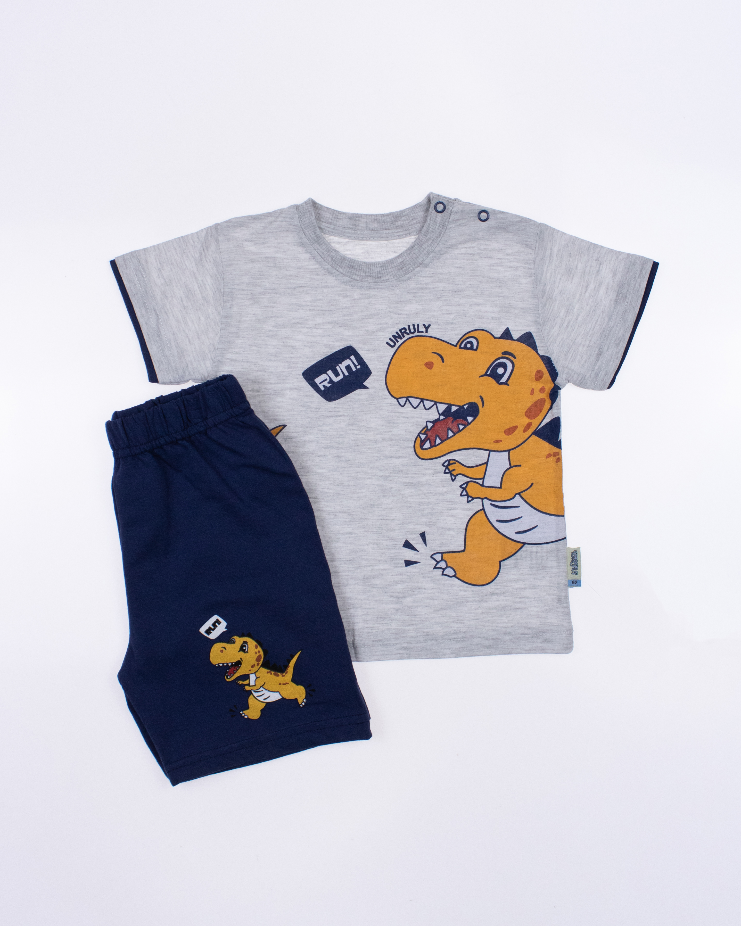 Модель выполнена из хлопкового полотна и оформлена печатным принтом. Футболка прямого кроя, с округлым вырезом горловины. Шорты умеренного объема без  карманов.
