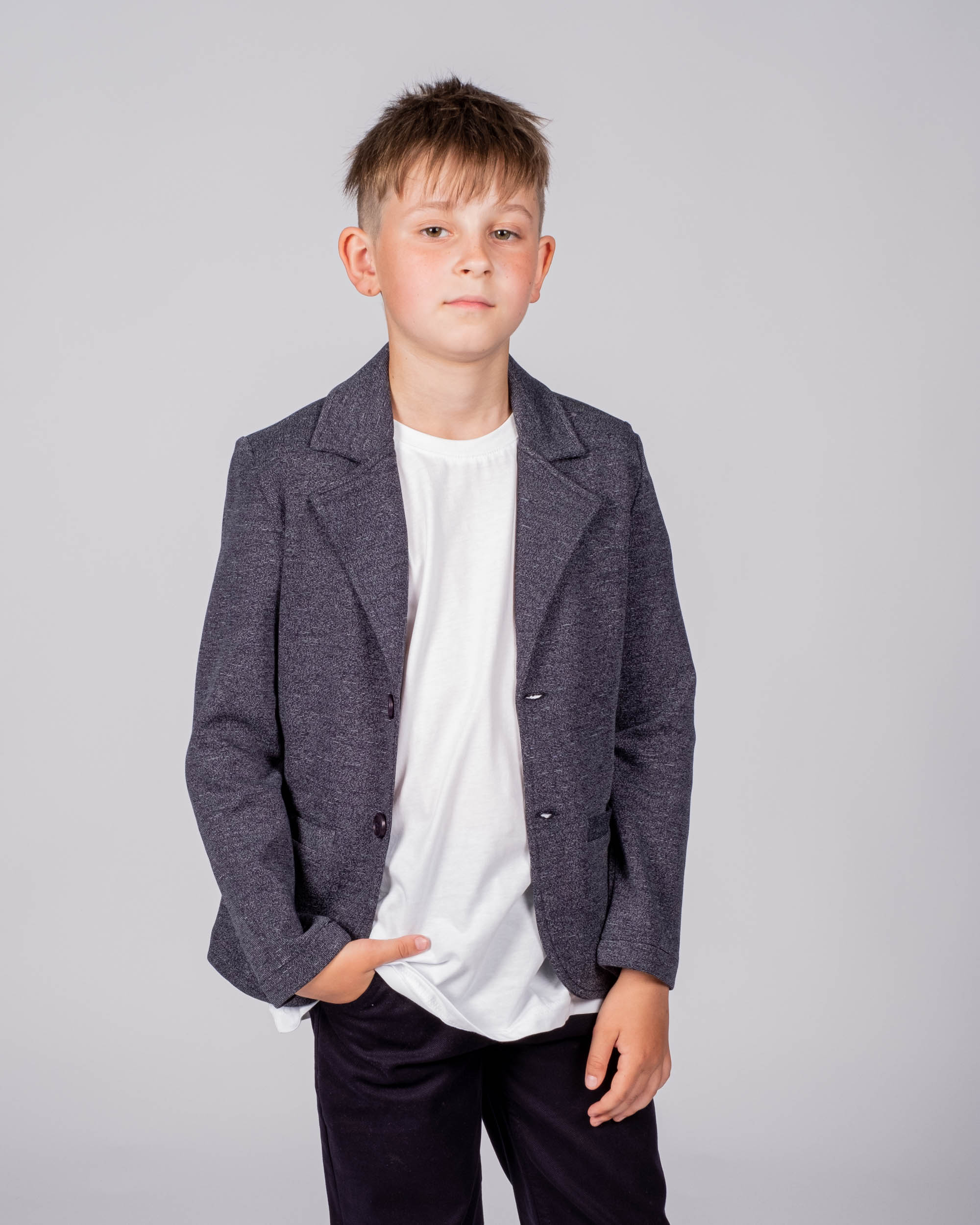 Трикотажный пиджак Cegisa для мальчика оптом. Выполнен из хлопковой ткани. Отложной воротник , вместительные карманы и разъемная застежка - пуговицы. Хорошо сохраняет цвет и форму при длительной носке и после многократных стирок. Прекрасно будет смотреться как школьная форма.
