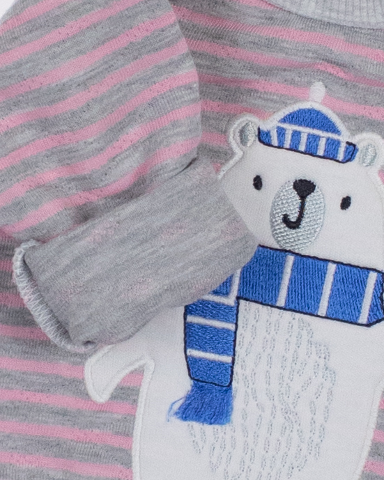 Модель имеет округлую горловину, которая обеспечивает удобство при надевании. Нижняя часть свитшота оформлена манжетом, что не только придает стильный вид, но и гарантирует хорошую посадку. На груди расположен милый принт мишки, который добавляет наряду игривости и ярких красок, подчеркивая индивидуальность маленькой принцессы. Еще одной удобной особенностью является застежка-кнопки на плече, которая позволяет легко и быстро одевать и раздевать малыша, избегая лишних усилий и дискомфорта. Этот свитшот – отличное решение для повседневной одежды, идеальный как для прогулок на свежем воздухе, так и для домашних игр.