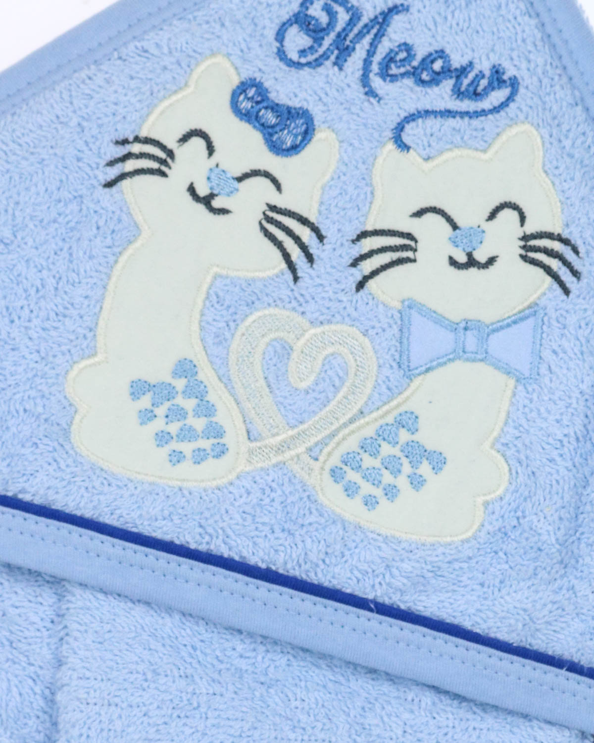 Полотенце с капюшоном и рукавица,  позволяет вытирать ребенка после купания так, чтобы его головка всегда оставалась в тепле. Благодаря петельке -   детское полотенце с капюшоном легко повесить сушиться, а варежкой можно вытереть ребёнка после кормления, а также утром после крепкого сна.  Детское полотенце из махровой ткани приятное на ощупь, отлично впитывает влагу и быстро сохнет. Капюшон декорирован милейшей аппликацией и вышивкой. Края детского полотенца обработаны хлопковой трикотажной окантовкой.