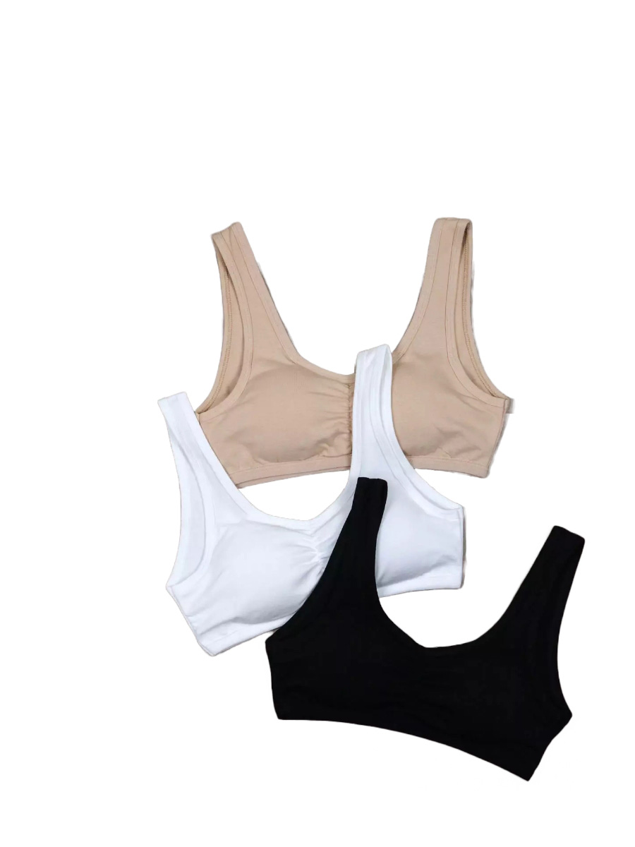 В наборе по 1 штуке белый, черный и бежевый цвет. Майка-топ детская оптом, производства Турция, является идеальным и комфортным вариантом нижнего белья для девочек. Топы Baykar изготовлены из дышащего хлопка на 95%, с добавлением эластана на 5%. Модель бюстгальтера имеет мягкую чашку без косточек и съемные вкладыши из поролона. Кроме того, наличие съемных вкладышей из поролона позволяет регулировать уровень поддержки и формы груди. Это особенно полезно для подростков, которые находятся в периоде активного физического развития. Мягкий материал и удобный фасон делают эту майку-топ идеальным выбором для повседневного нижнего белья. Она также отлично подходит под одежду, особенно под блузки. Более того, она станет незаменимым аксессуаром для занятий спортом, бега и фитнеса. Нижнее белье от Baykar обеспечивает комфорт на протяжении всего дня. Мягкая ткань и отсутствие косточек позволяют коже дышать и не создают ощущения дискомфорта. Это особенно важно для детей, так как они проводят активное время, и им нужна надежная и удобная одежда.