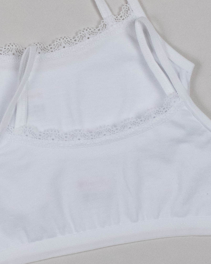 Хлопковый топ-бюстье Donella на тонких лямках оптом. Низ изделия обработан мягкой бельевой резинкой, которая не передавливает тело и обеспечивает комфортное ношение.